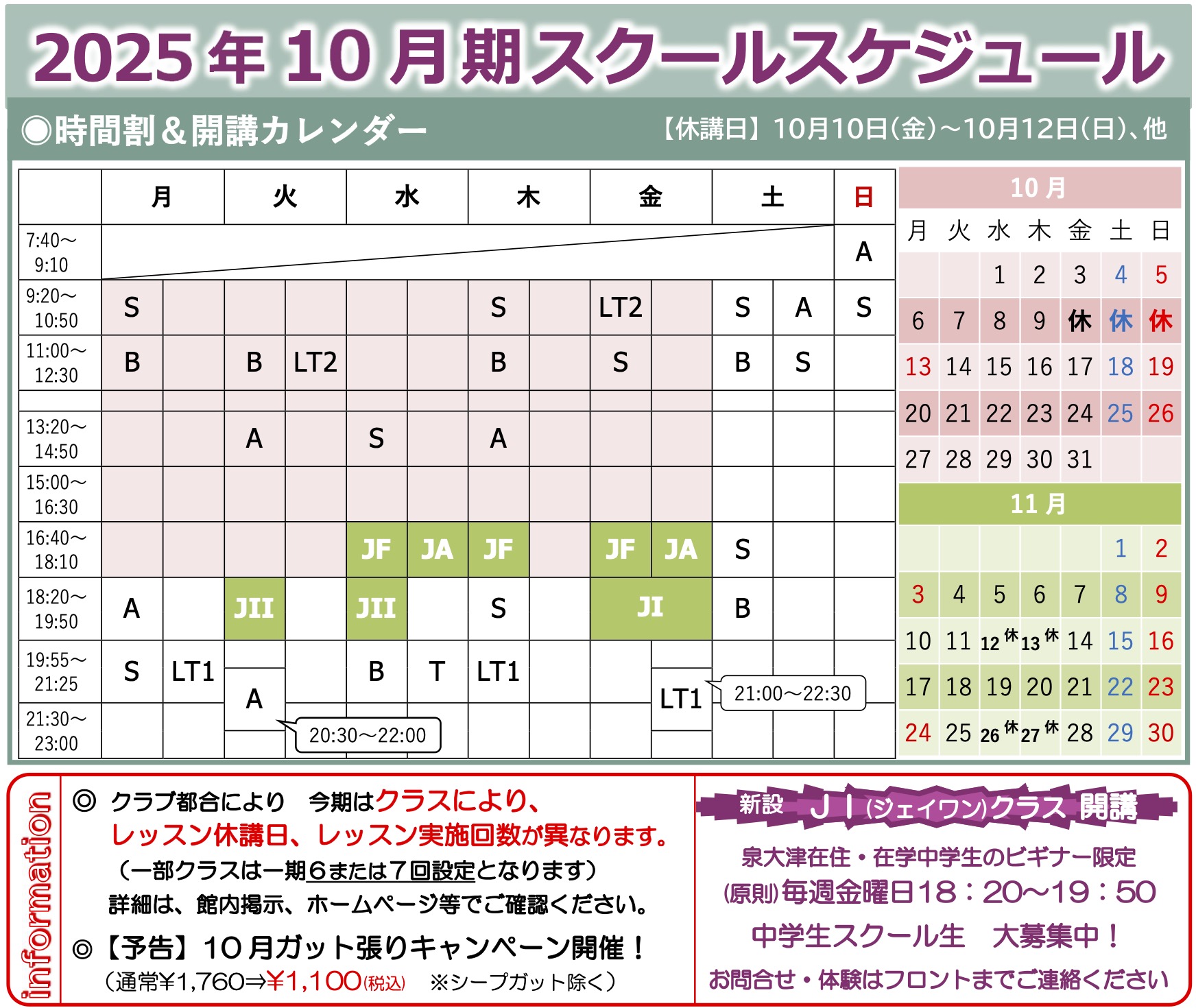 あらゆる世代・レベルの方に楽しんでいただけるよう、平日はもちろん週末や夜間のクラスも充実。