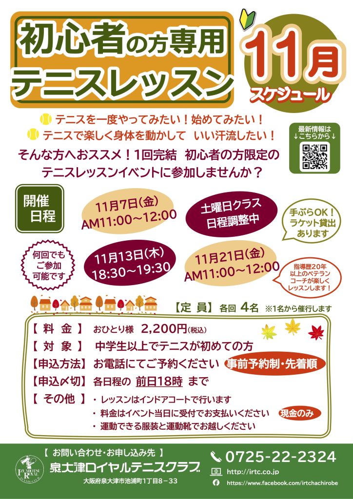 11/2更新【初心者の方向け】テニスレッスンイベント最新スケジュール
