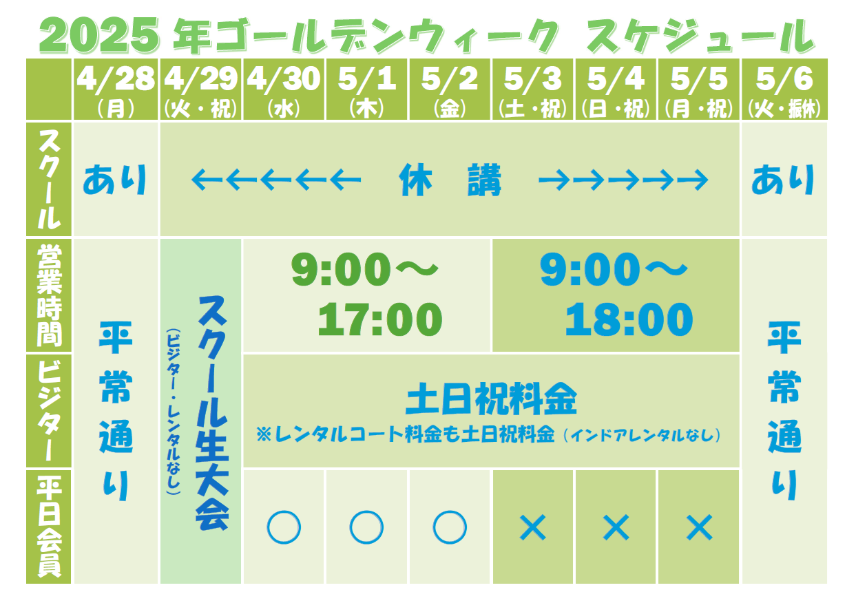 2025年・ゴールデンウィークの営業スケジュールの…