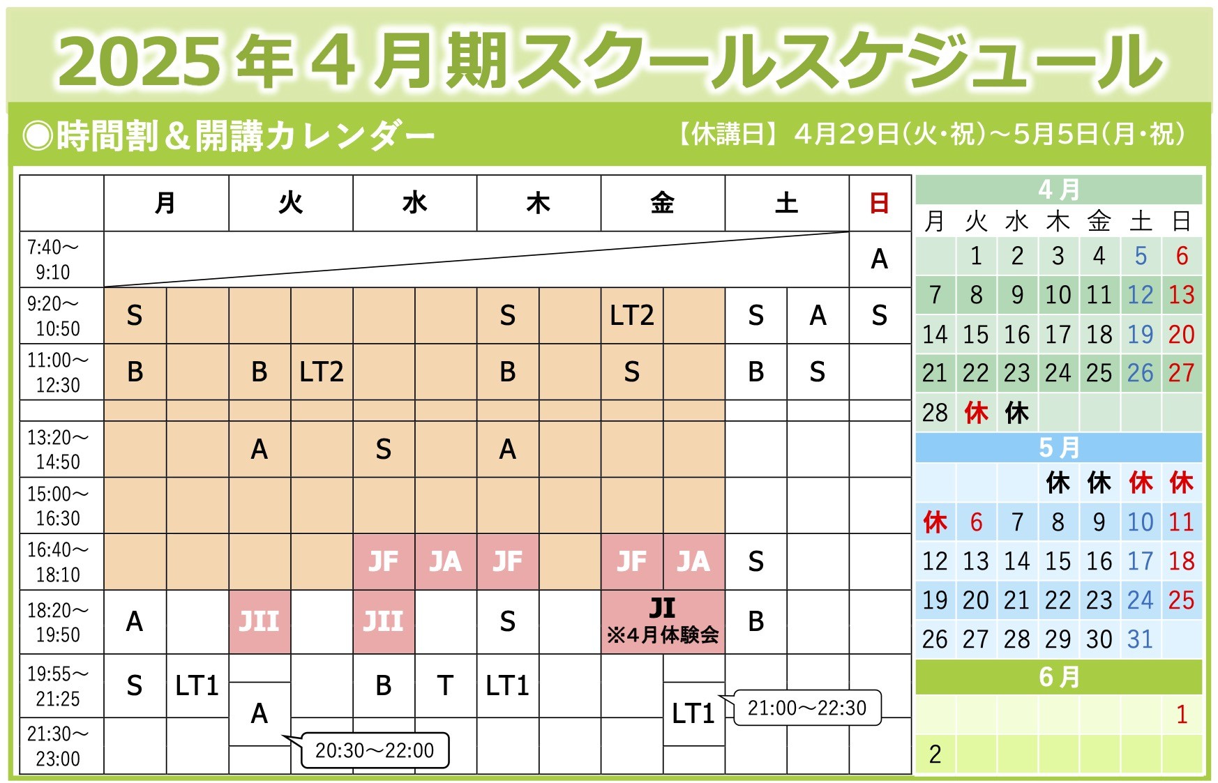 今期(2025年4月期)のスケジュール・時間割